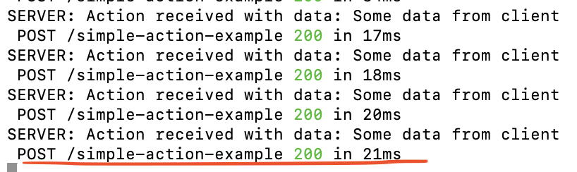 Along with our "server" logs, I can see a POST request with the URL that triggered the Action call. If I open the Network panel, it confirms it: