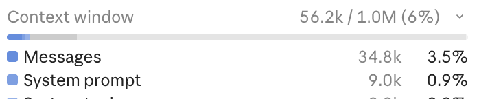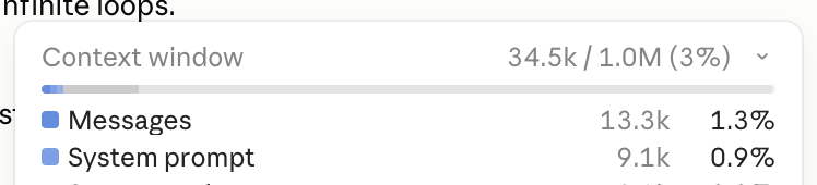 First of all, the Context usage shrank: from ~80k to 34k for messages. So only one article was embedded in the Context this time. Yay for fewer tokens and less Context rot!