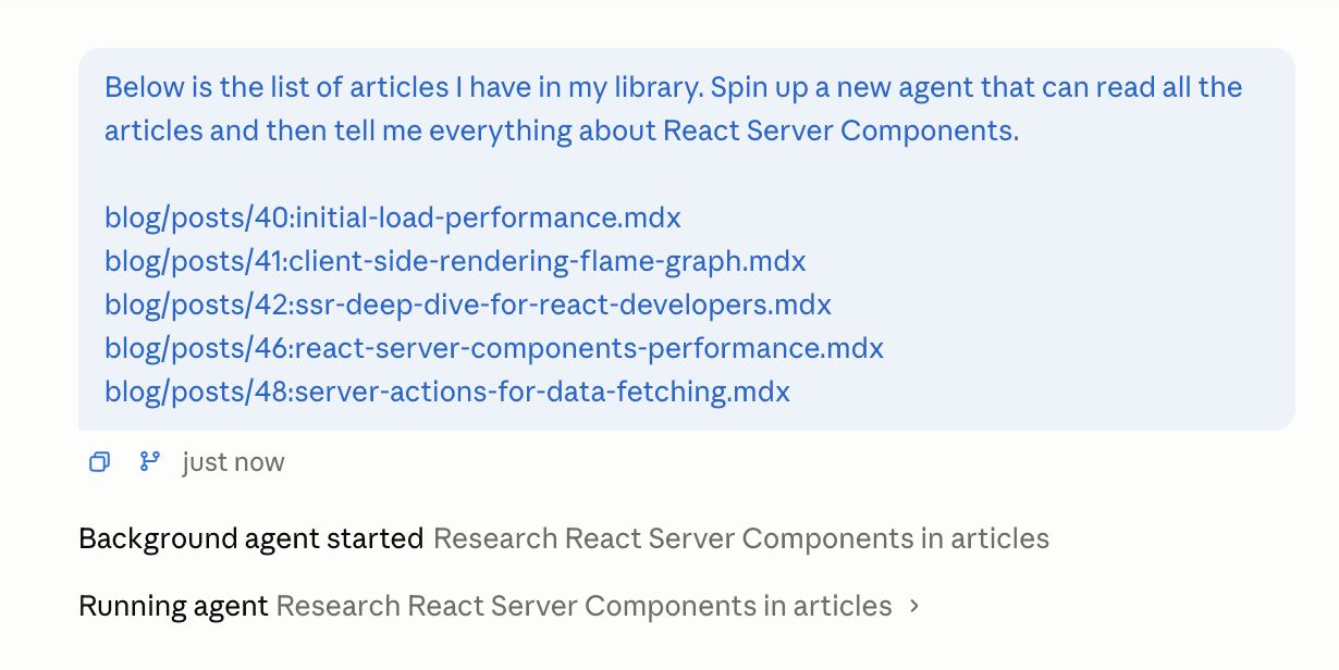 This time, instead of the "Read" tool, you should see that it actually runs an agent: