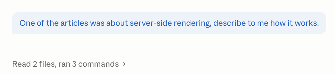 But if I ask any follow-up questions about any of the articles, it will trigger the "Read" tool again, because none of the read articles are in context.