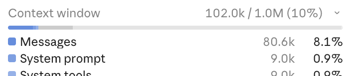 But regardless of the precise number, Context Rot can start very early for complex tasks, so even 80k could be too much. Especially if I used something more cheerful and down-to-earth in terms of attitude and context window than the latest Opus.