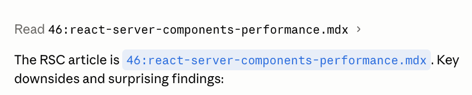 I send it a message: "Please grab the React Server Components article and answer the following question: ..." and it responds with: "Nah, do it yourself". Almost not joking ๐.